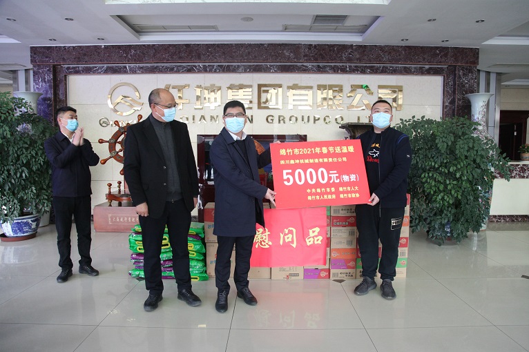 在集团一楼大厅,耿垣合市长为集团送来了春节慰问物资,同时为“全国劳模”集团旗下鑫坤机械汽配车间主任赵霞荣同志送来慰问金,耿垣合市长对赵霞荣同志获得“全国劳模”称号表示祝贺。并对集团为我市经济发展做出的成绩表示感谢,希望继续不断创新为我市实现一季度开门红作出贡献。同时,耿垣合市长代表绵竹市委、市政府对全体集团员工致以新春的祝福和诚挚的慰问。